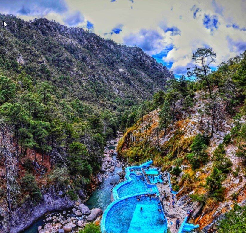 Recowata se encuentra al fondo del cañón de Tararecua a 15 kilómetros de Creel Chihuahua, son un balneario que se mantiene a 30 grados todo el año…